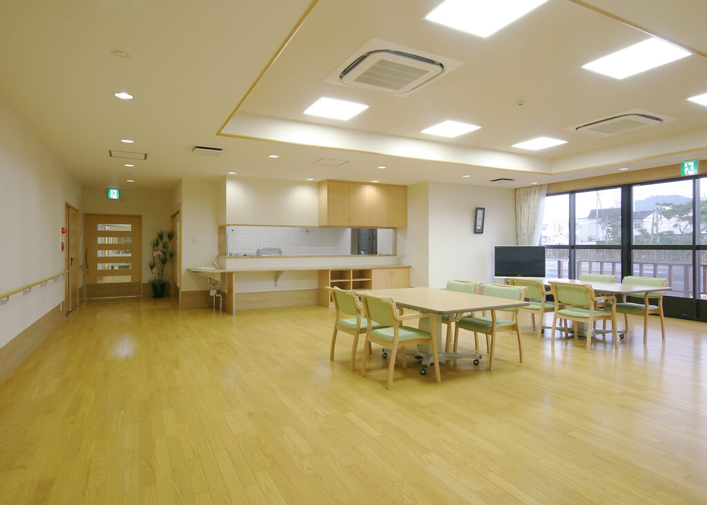 皆様がお食事や談笑を楽しまれる、当施設の中心となる空間がこの居間・食堂です。